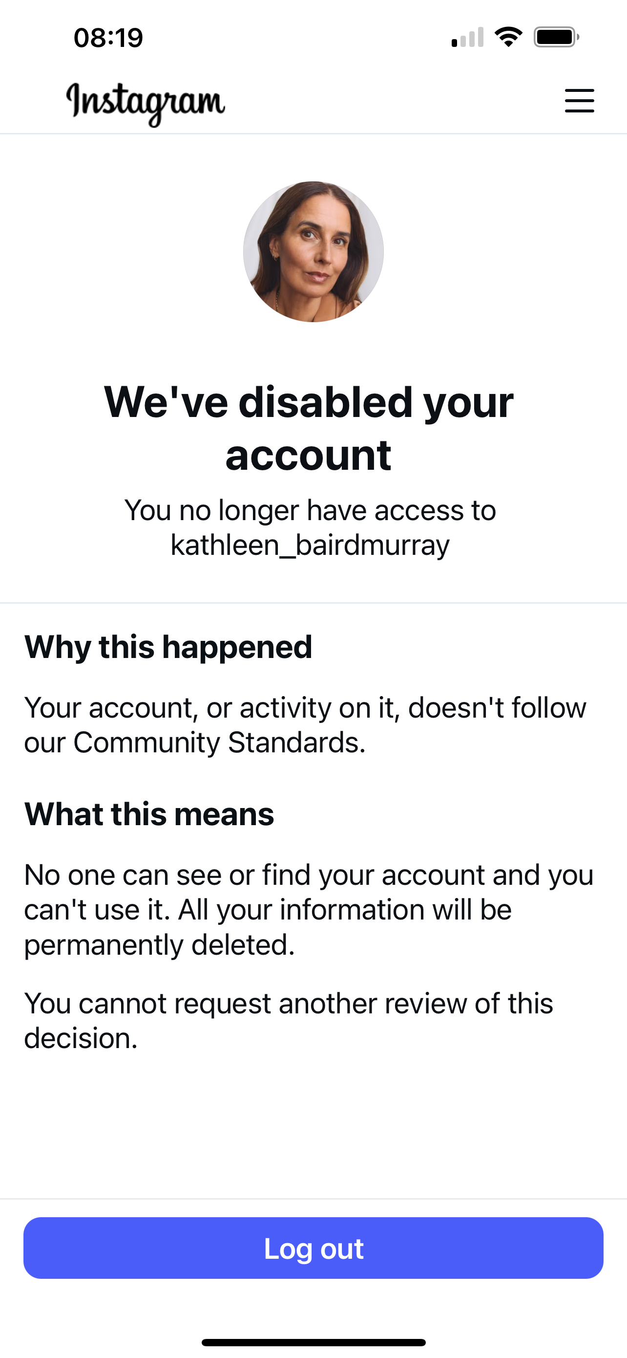 A message popped up saying I’d been locked out of my account. In fact it had been closed. In fact I would never get any of my posts back again. In fact, don’t even think of asking for a review. All with proper Instagram branding and official language, and now I didn’t know what was Instagram and what wasn’t any more.